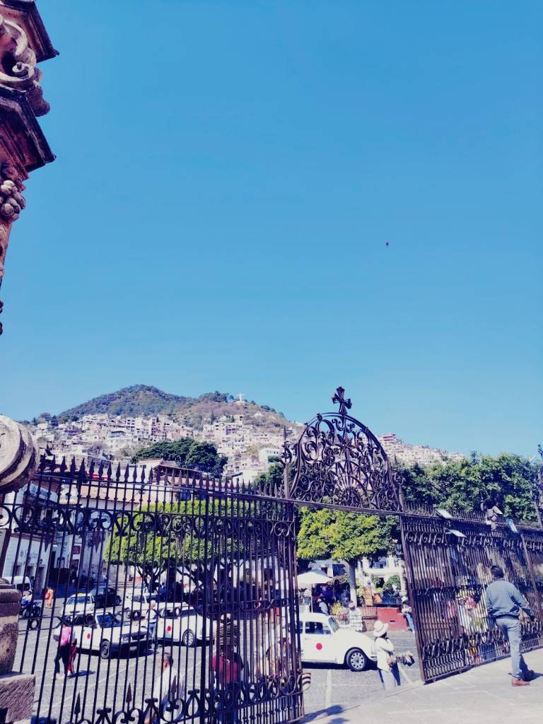 - La escultura tiene una vista panorámica de la ciudad de Taxco y sus alrededores.